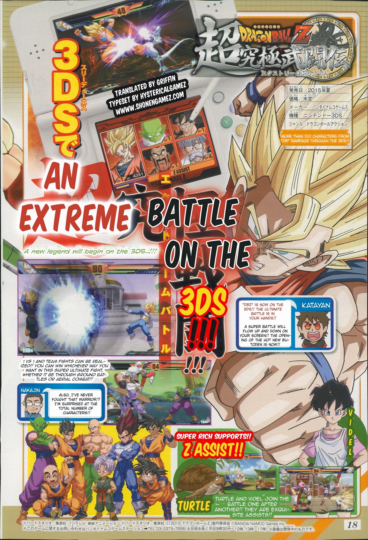 Another scan has come in for Dragon Ball Z: Extreme Butoden. In it, we see that Master Roshi’s turtle and Videl will be included as support characters. Support characters can be accessed at the tap of an icon.
