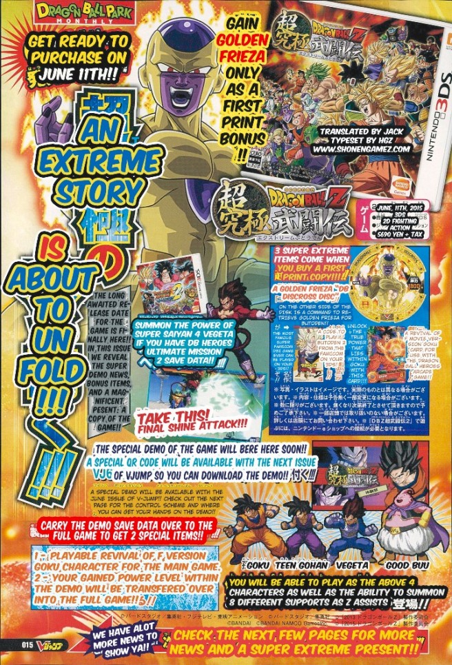 Dragon Ball Z: Extreme Butoden is launching in Japan on June 11, the latest issue of V Jump confirms. V Jump shares other updates pertaining to the game too.