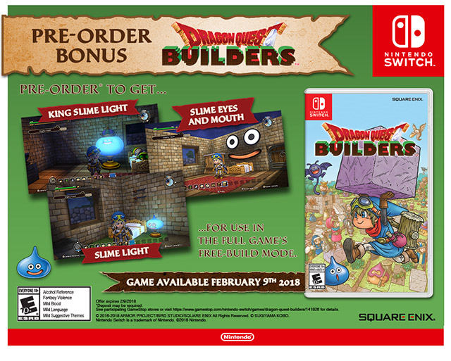 GameStop has revealed a pre-order bonus for Dragon Quest Builders. If you reserve the game, you’ll gain access to exclusive Slime DLC.