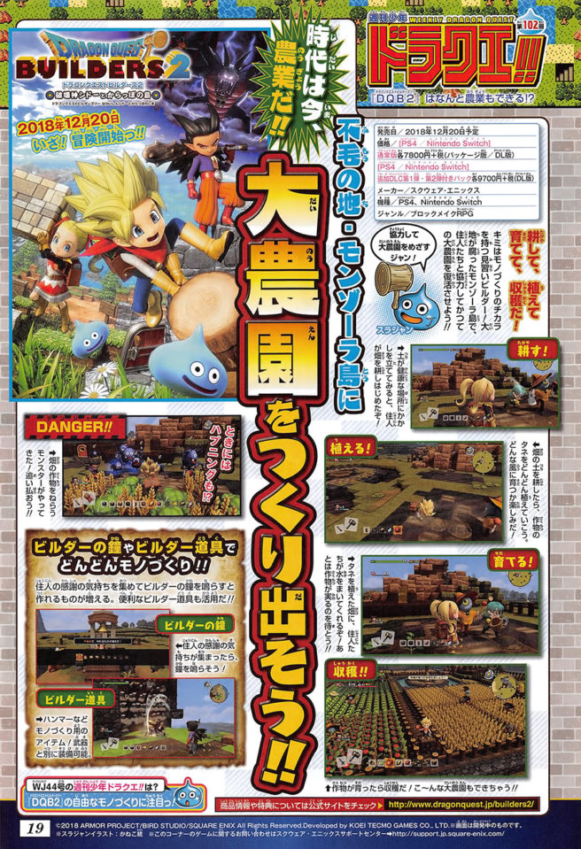 Weekly Jump has provided an update on Dragon Quest Builders 2, specifically showing off farming. We have a scan from the magazine and details below, courtesy of Gematsu.