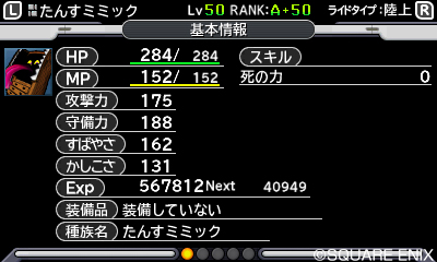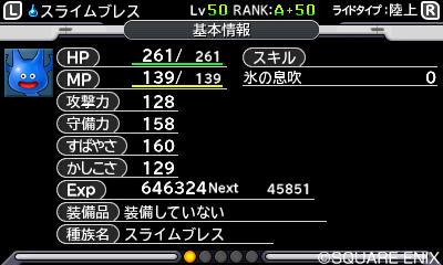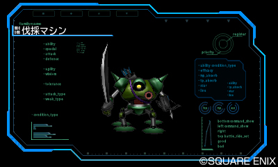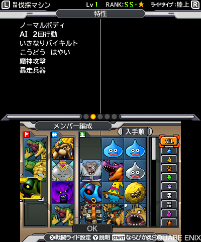 – Ex: Super Vital Synthesizing a mimic (normal body, Absorb Magic, fast action) with a dragon slime (small body, Parameter Break, glance up) creates an SS-Rank Lumbering Machine that inherits the “fast action” of his parent, allowing him to attack before enemies