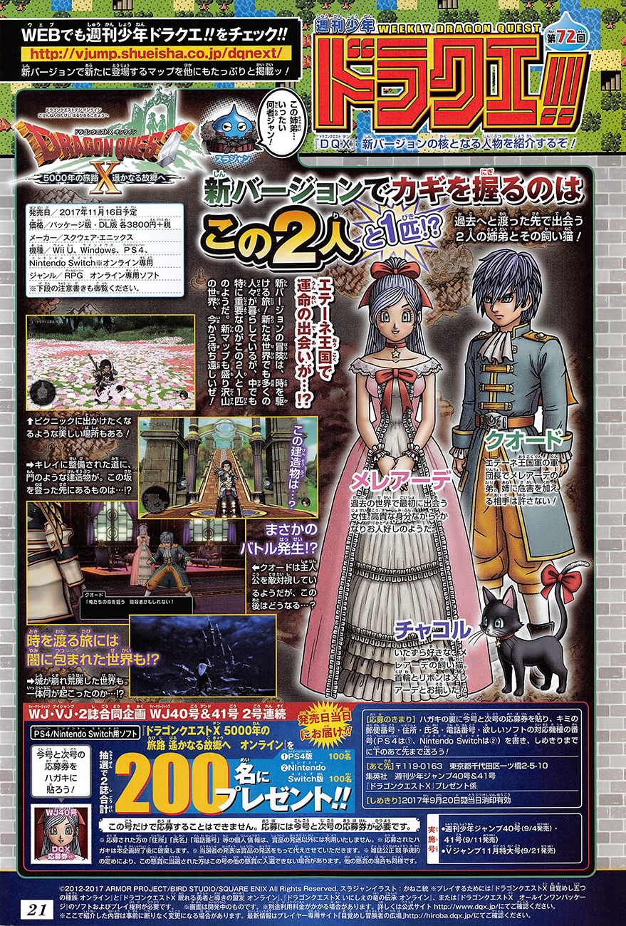 This week’s issue of Jump offers more information about the new Dragon Quest X expansion, The 5,000 Year Journey to the Distant Homeland Online. Three characters are introduced.
