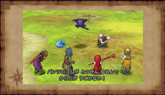 Dragon Quest XI’s next restriction is known as “ashamed curse”. It makes you unable to speak properly to people in town, causes embarrassing things to happen in battle that make you unable to act (such as the elastic band of your underwear breaking), and has various other embarrassing elements.