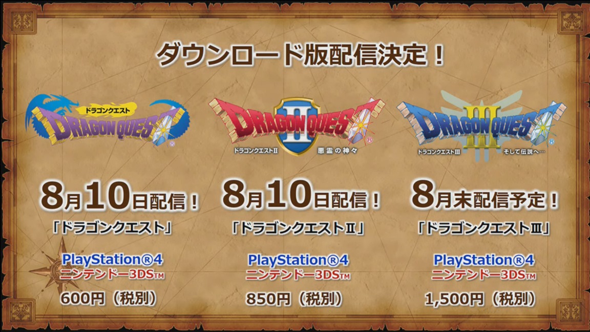 Dragon Quest I and Dragon Quest II will get things started next week – specifically August 10. Dragon Quest III will follow towards the end of the month.