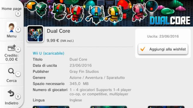 After hitting the North American Wii U eShop a few weeks ago, Dual Core will be heading to Europe later this month. A listing from the store pins the game down for June 23 in PAL territories. Pricing is set at €9.99.