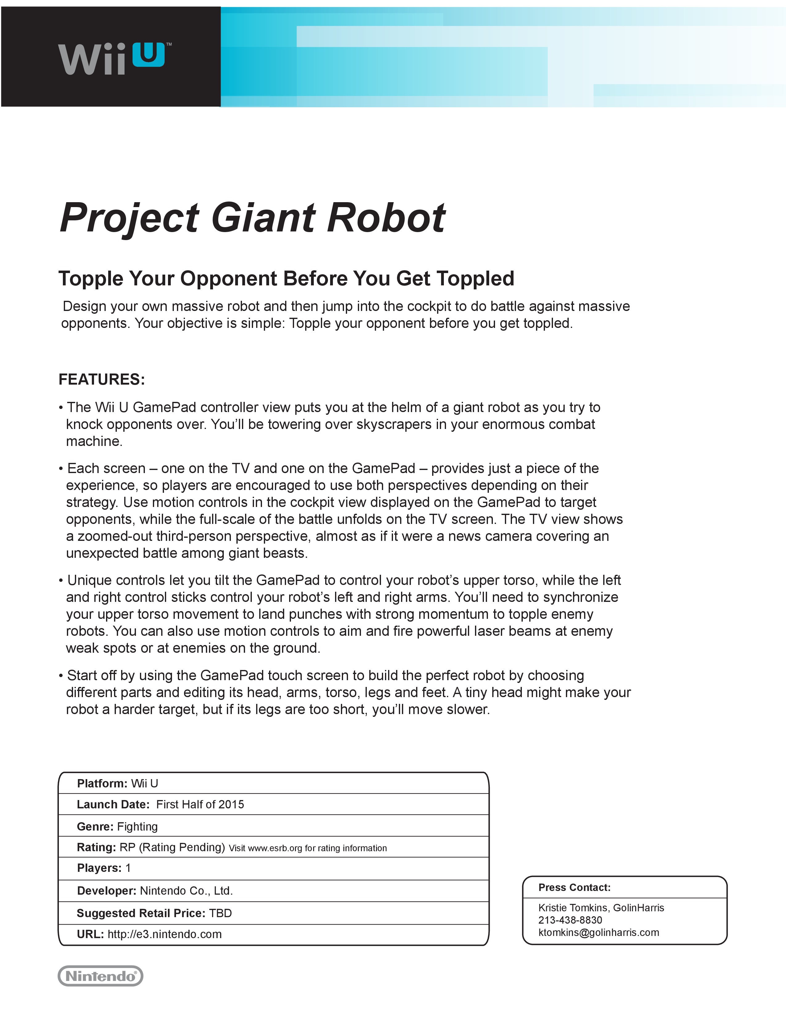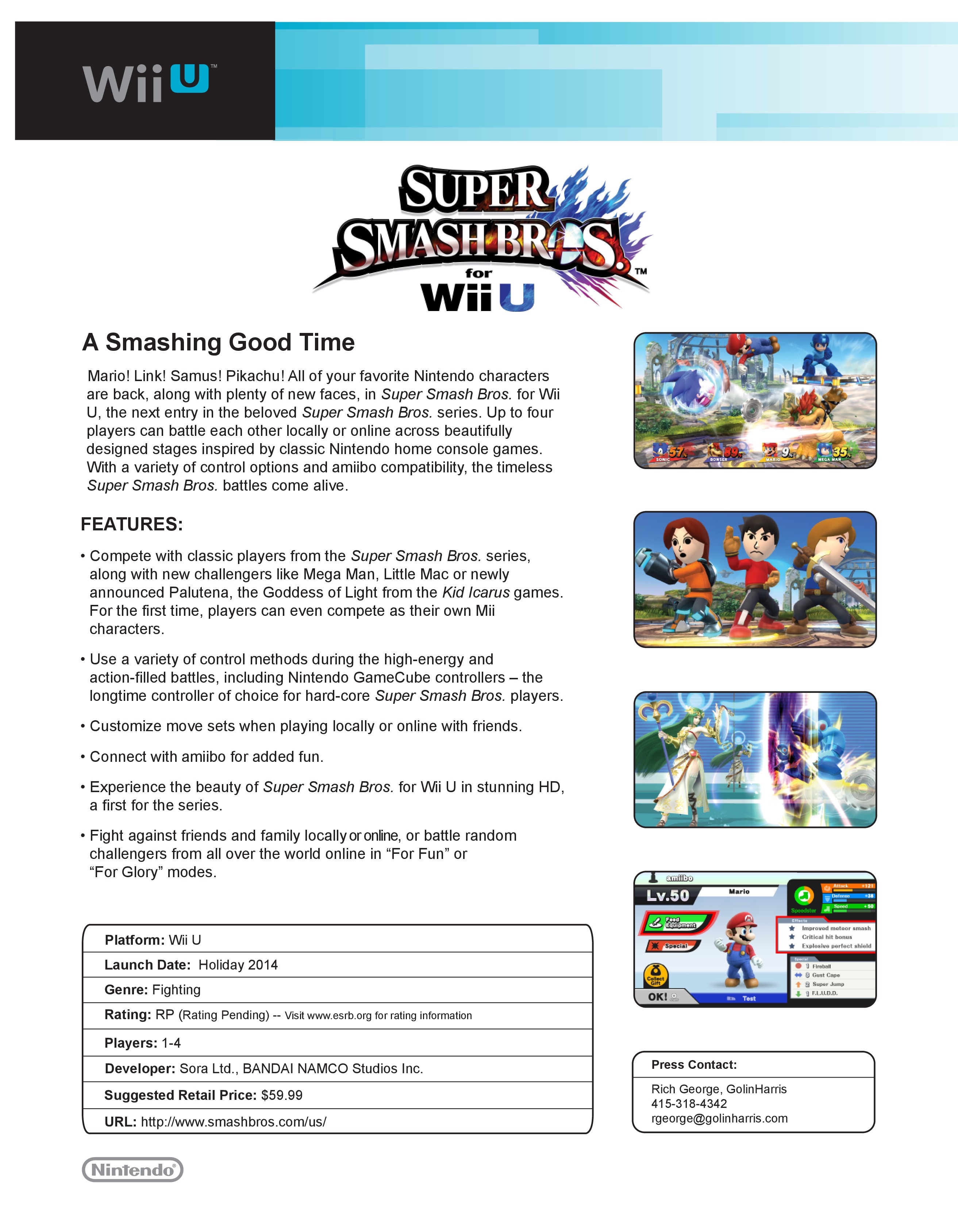 Fact sheets for Nintendo’s E3 2014 games (lots of details)