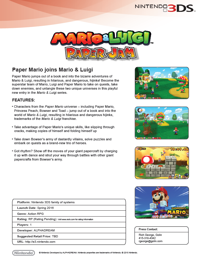 - A lot more than traditional RPG elements shown, Papercraft Mario demoed which was essentially a tank
