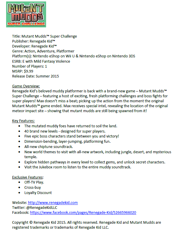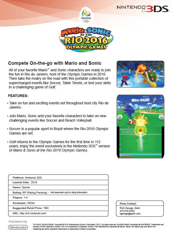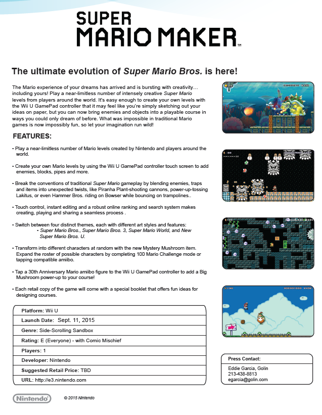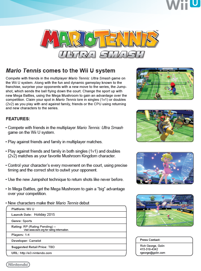 - Mario Tennis for the Wii U, coming holiday 2015
