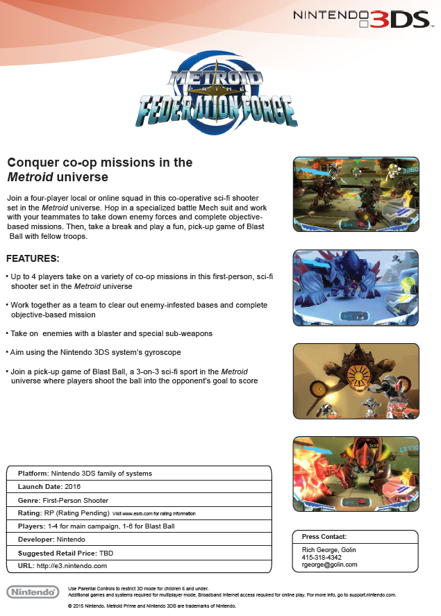 Metroid Prime Federation Force (3DS) announced