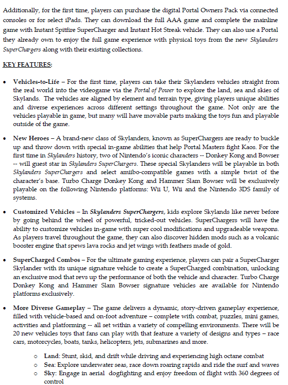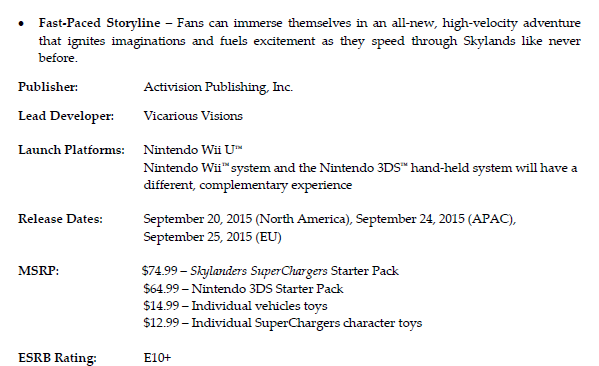 - Slated for Holiday 2015
