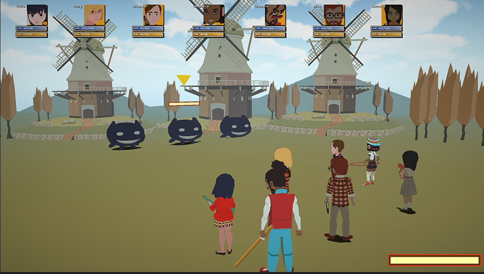 - touch screen battle elements shown, spinning a wheel to access commands and do attacks