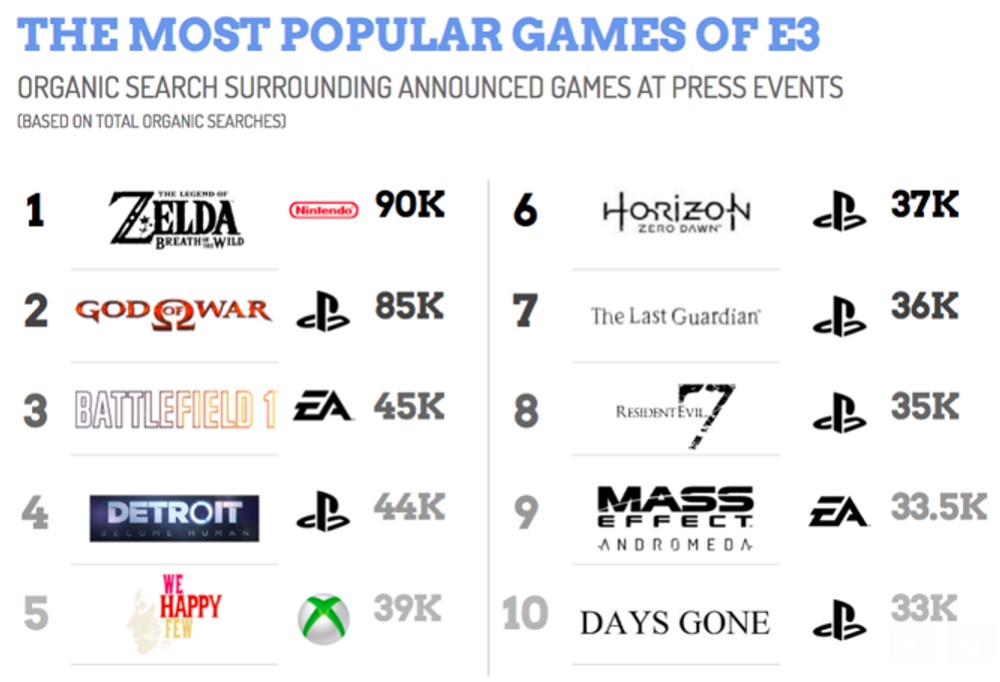 We’ve seen all sorts of data pop up over the past week when its comes to E3 and the most popular games of the show. ListenFirst has now determined that The Legend of Zelda: Breath of the Wild was the top game based on an analysis of Internet search results this week.