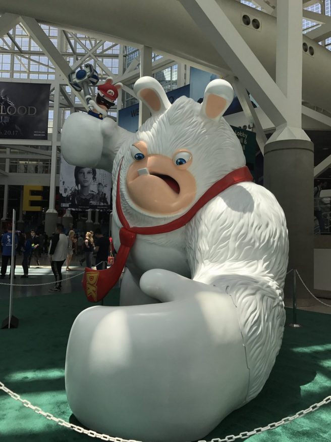 Check out the mighty Rabbid Kong from #MarioRabbids greeting everyone at the entrance of #E3! #UbiE3 pic.twitter.com/GFFjZMEAGL