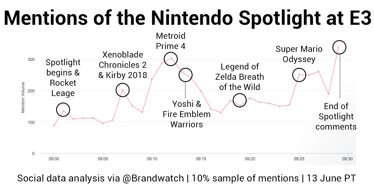 A look at social media activity during the Nintendo Spotlight: E3 2017 video presentation