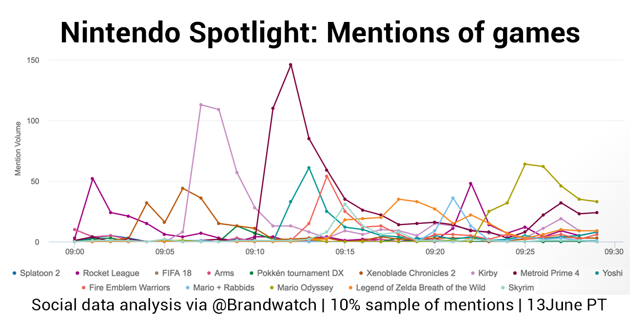 – Over 50,000 mentions of the Nintendo Spotlight between 9 and 9:30am PT