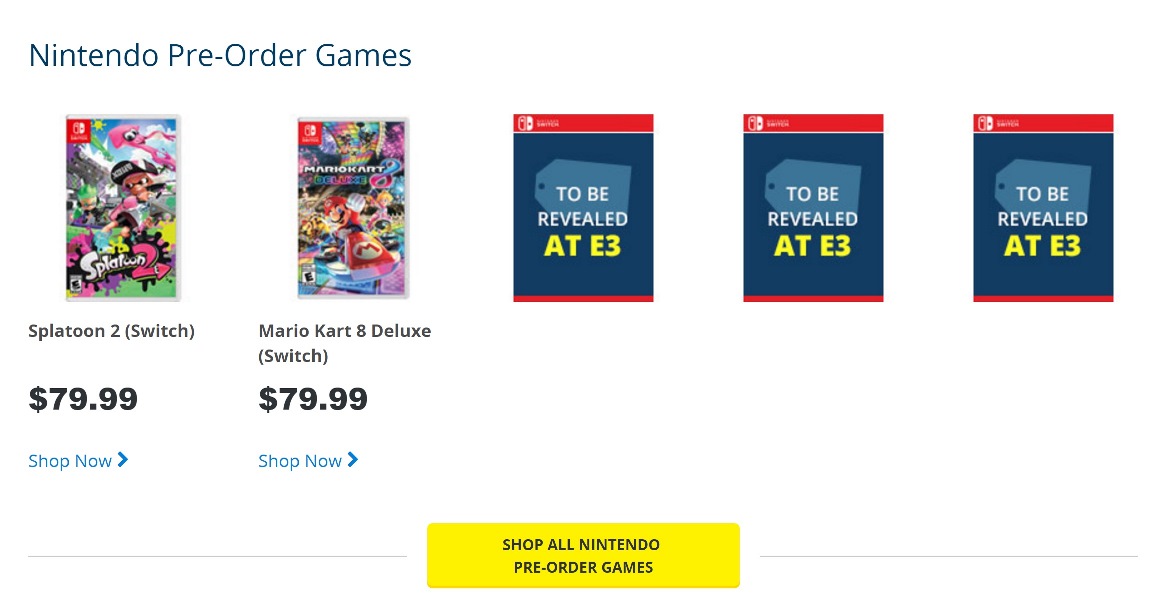 Best Buy Canada shows placeholders for three Switch games supposedly being revealed at E3