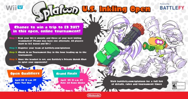 Show off your skills in the new Splatoon U.S. tournament for a chance to win a trip to E3 2017
