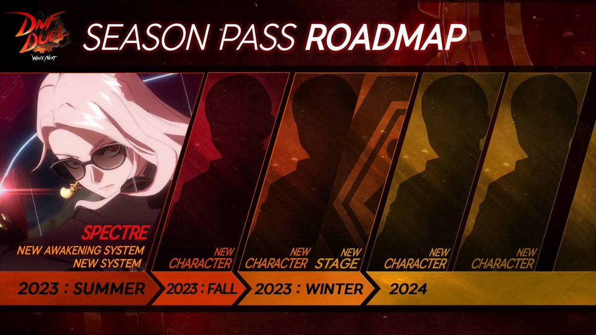 First up in the summer is Spectre as a new character along with the Awakening system and another unspecified system. After that in the fall, there’ll be another new character – who has yet to be announced. Winter 2023 will bring players another new character and stage. Finally, two more new characters are arriving in 2024.