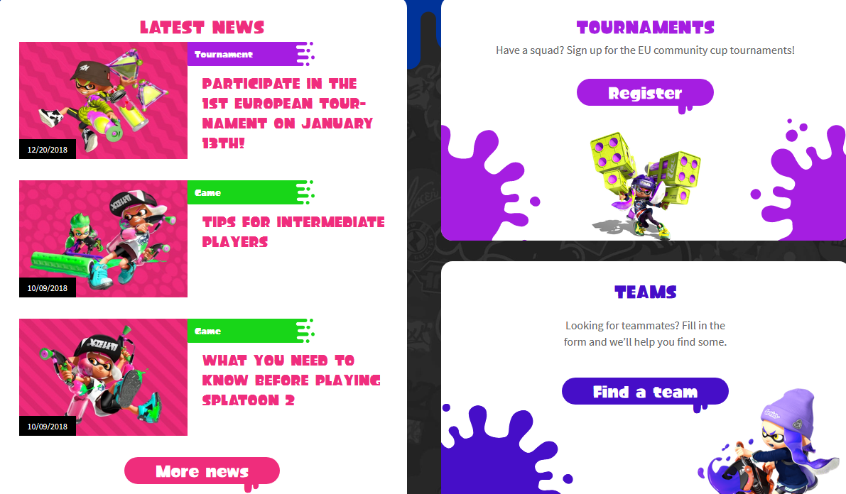 Nintendo has been actively fostering the Splatoon 2 competitive community ever since the game launched. Their latest effort went live today: a Splatoon 2 community site that allows players to create teams, look for squadmates and take part in tournaments. This is a collaboration with Toornament, a dedicated eSport organization platform.