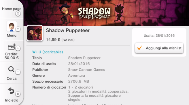 Shadow Puppeteer was originally listed for release on January 21 in Europe on the Wii U eShop. That date has since changed, and the game is now expected on January 28. We’ll let you know if we hear about the release date moving again.