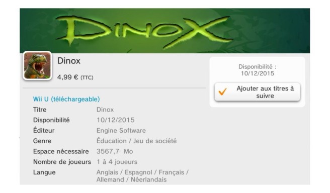 Another eShop release has been confirmed for Europe. On December 10, Engine Software will be bringing out the educational title Dinox. Pricing is set at €4.99.
