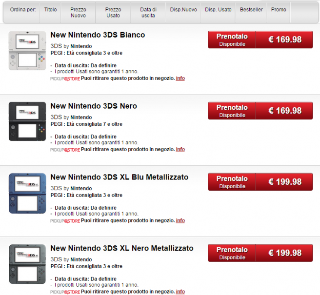 GameStop Italy taking pre-orders for the New 3DS, pricing revealed