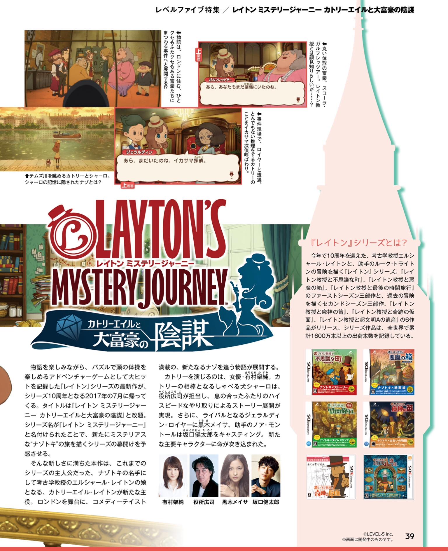 This week’s Famitsu scans are now available. Highlights include Marvelous’ Switch games, The Snack World, Layton’s Mystery Journey, and The Great Ace Attorney 2 (plus a single Pokemon Sun/Moon scan). Scans of all games can be found below.