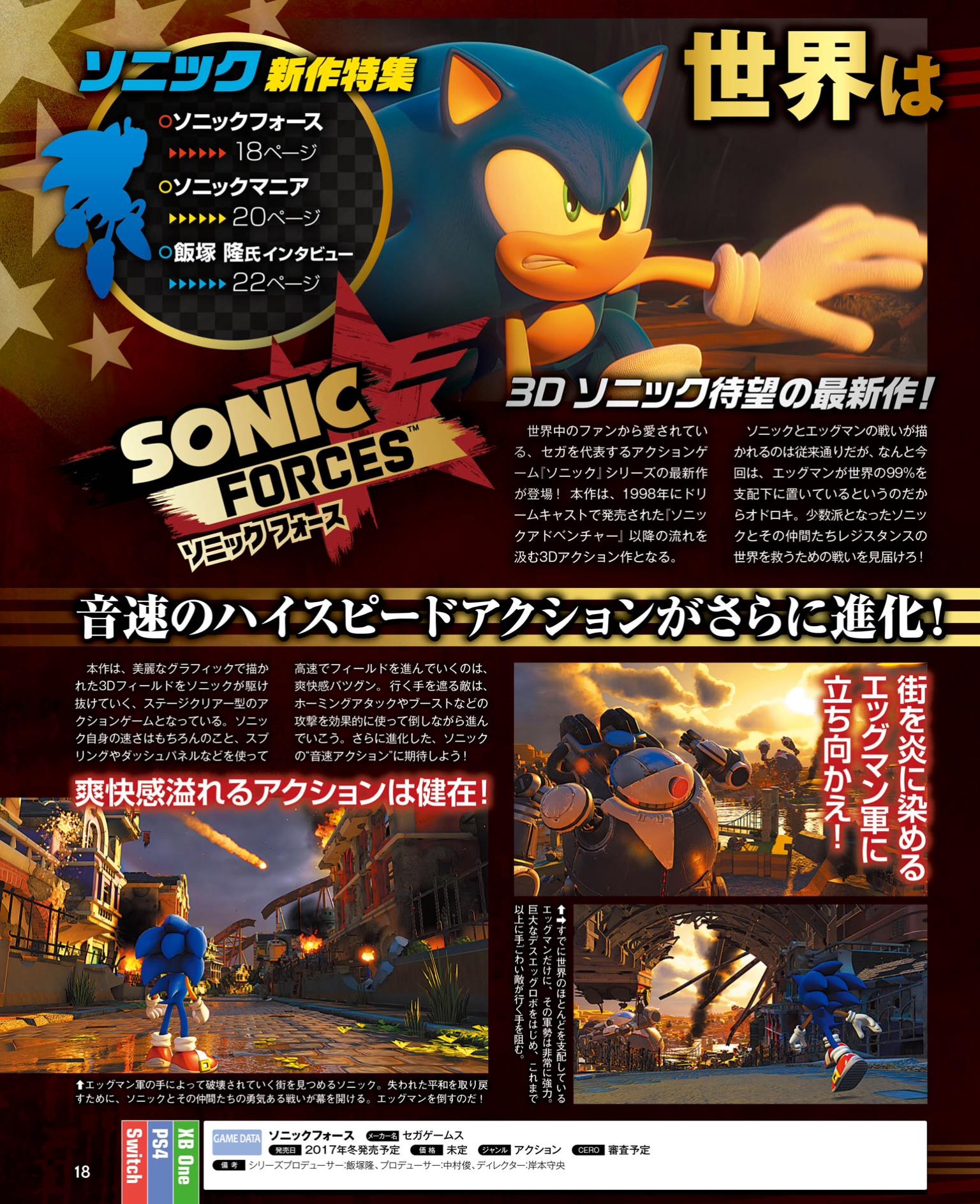 Sonic Forces and Sonic Mania are both featured in this week’s Famitsu. It’s the former title that has received more coverage with additional details.