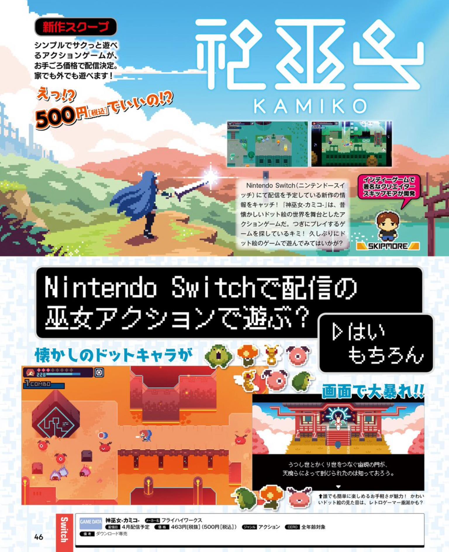 Fairune developer Skipmore is finishing up its first game for Switch. This week, Famitsu is revealing Kamiko for the eShop.