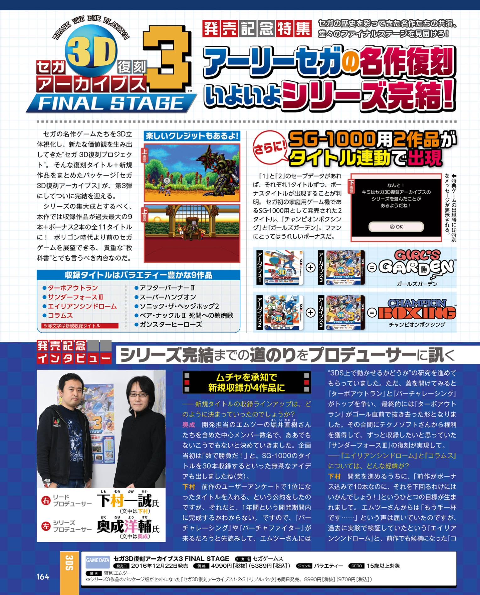 SEGA 3D Fukkoku Archives 3: Final Stage shipped in Japan this week. To mark the game’s launch, Famitsu caught up with developers Yosuke Okunari and Kagasei Shimomura for an interview.