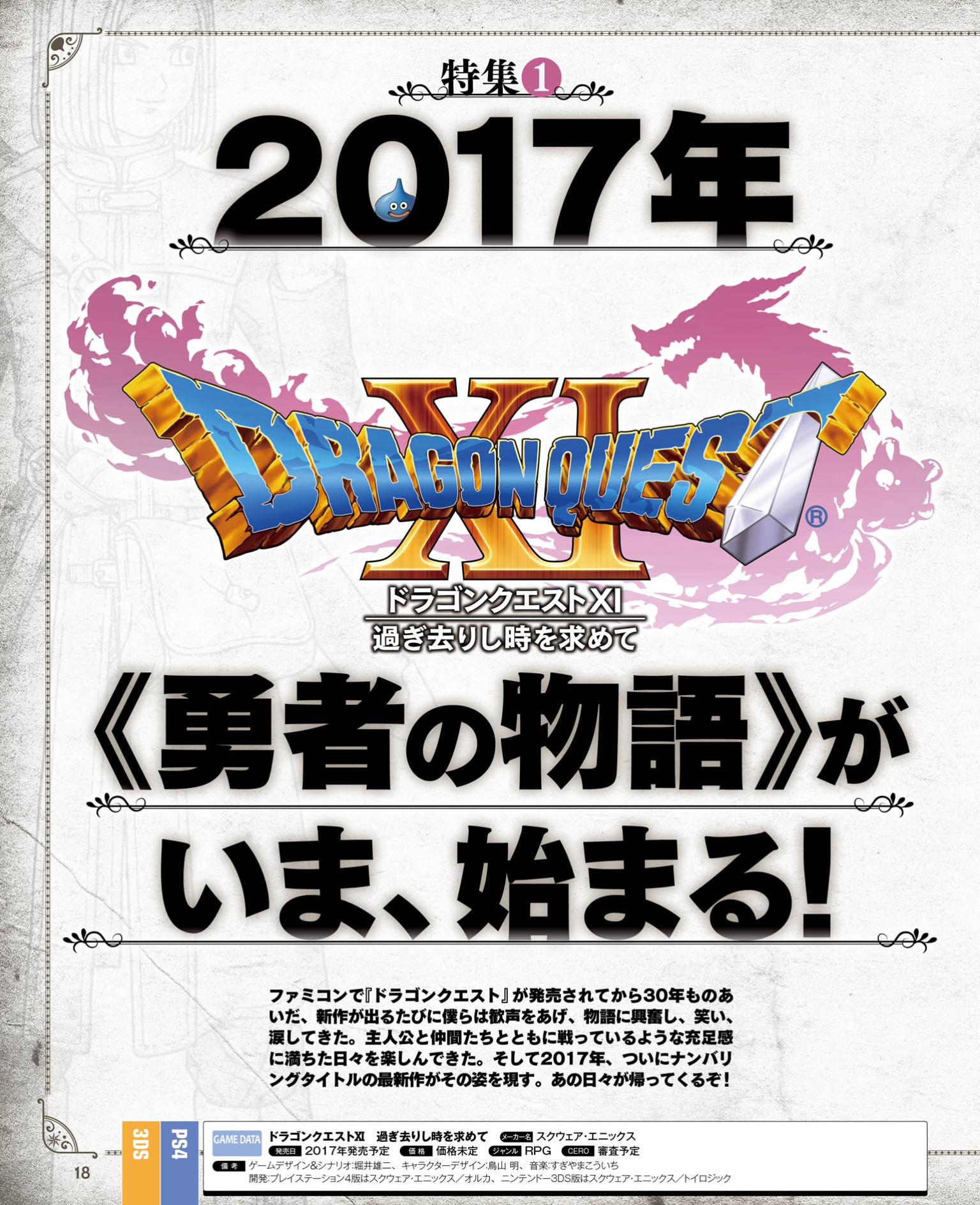 This week’s Famitsu scans are now available. Highlighted games include Dragon Quest XI, Dragon Quest Monsters: Joker 3 Professional, The Alliance Alive, and a Switch ad. Find all of the scans below.