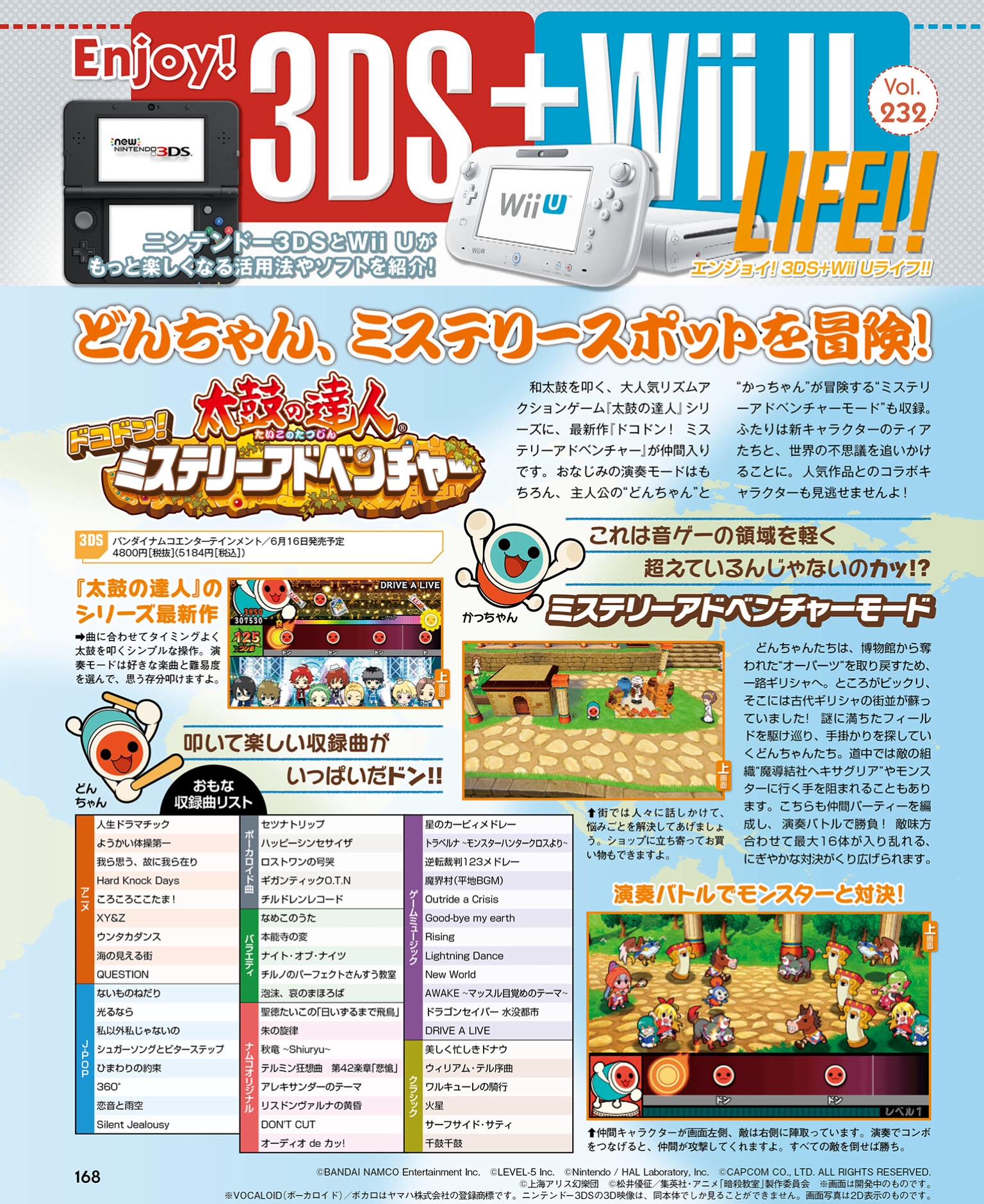 This week’s Famitsu scans are now available. Highlighted games Culdcept Revolt, Mario & Sonic at the Rio 2016 Olympic Games, Etrian Odyssey V, Puzzle & Dragons X, Story of Seasons: Trio of Towns, Yo-kai Watch 3, and Pokemon Sun/Moon. Scans of each can be found in the gallery below.
