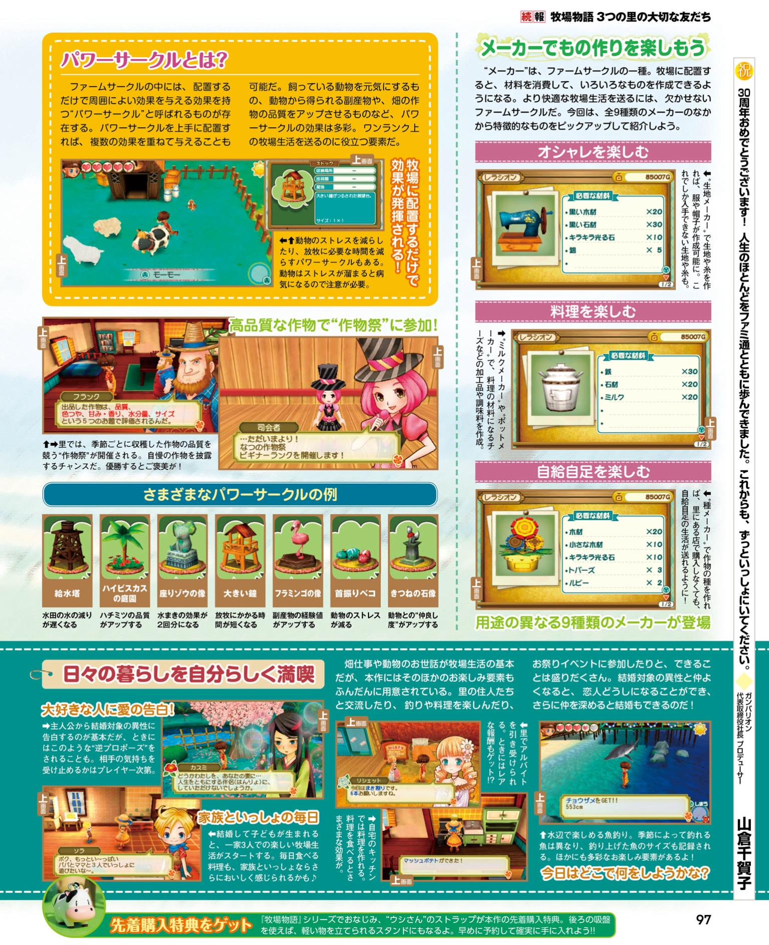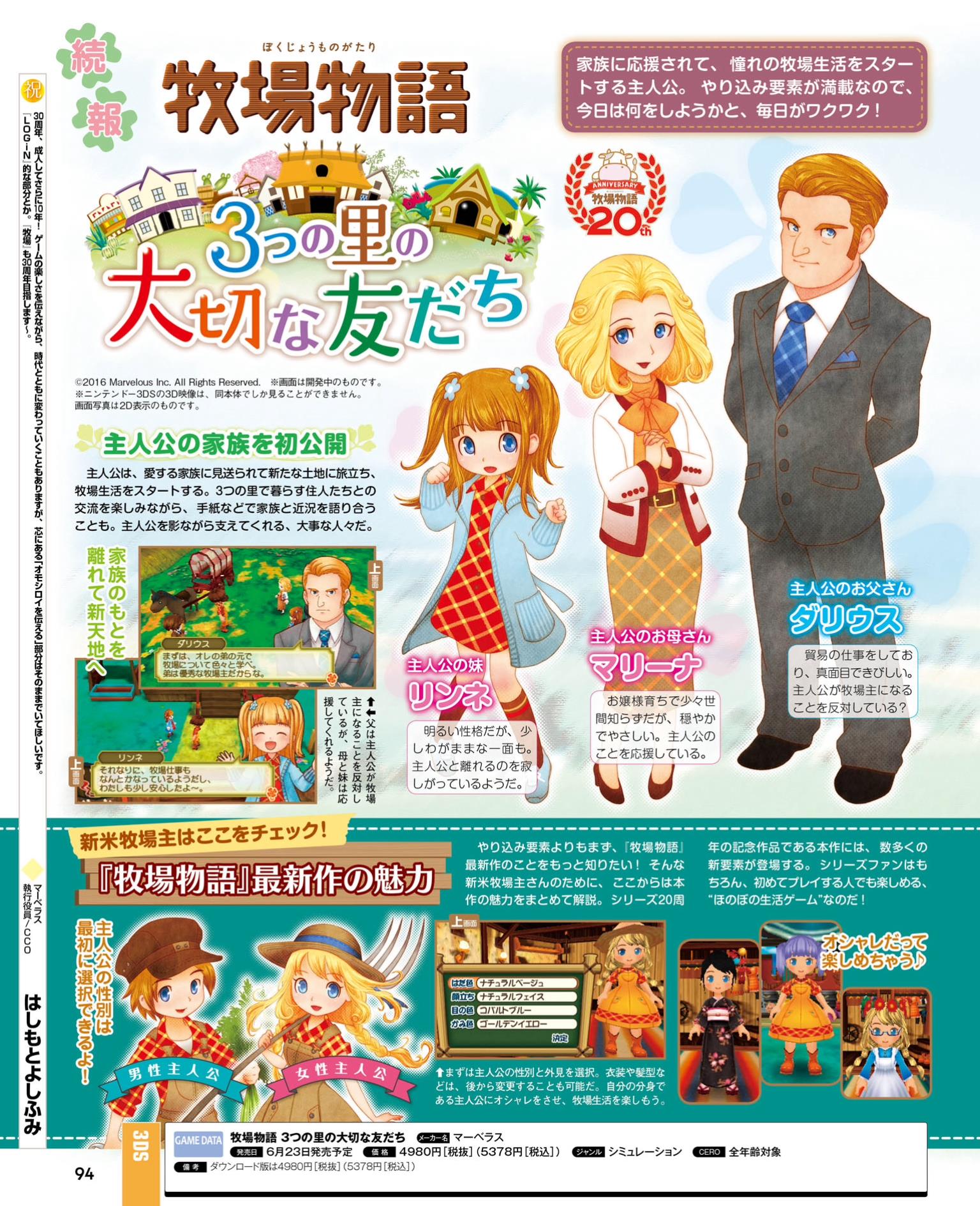 This week’s issue of Famitsu contains a four-page article on Story of Seasons: Good Friends of Three Villages. Much of the information was previously-known, but there are a few new details.