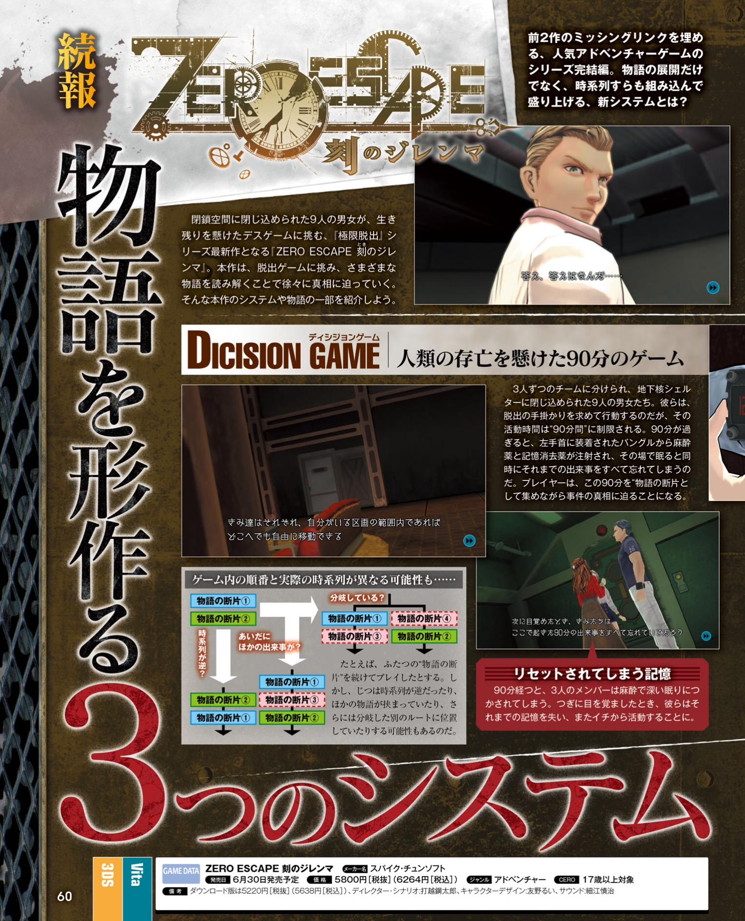 This week’s Famitsu has an four page feature on Zero Time Dilemma. The magazine recaps some previously-known information while also sharing extra tidbits.