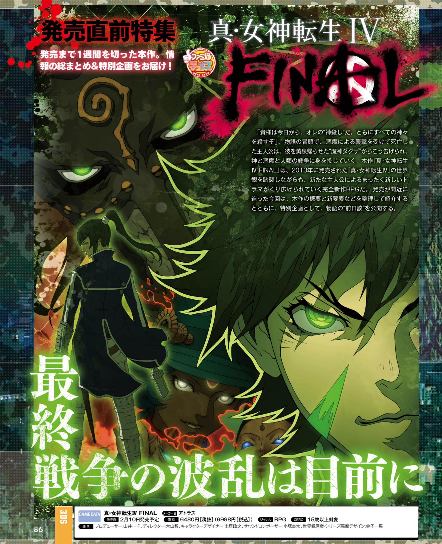 This week’s Famitsu scans are now available. Highlighted games include Assassination Classroom: Assassin Training Plan, Dragon Quest Monsters: Joker 3, Haikyuu!!: Cross Team Match, and Shin Megami Tensei IV Final (plus a Smash Bros. ad). Scans of each title can be found in the gallery below.