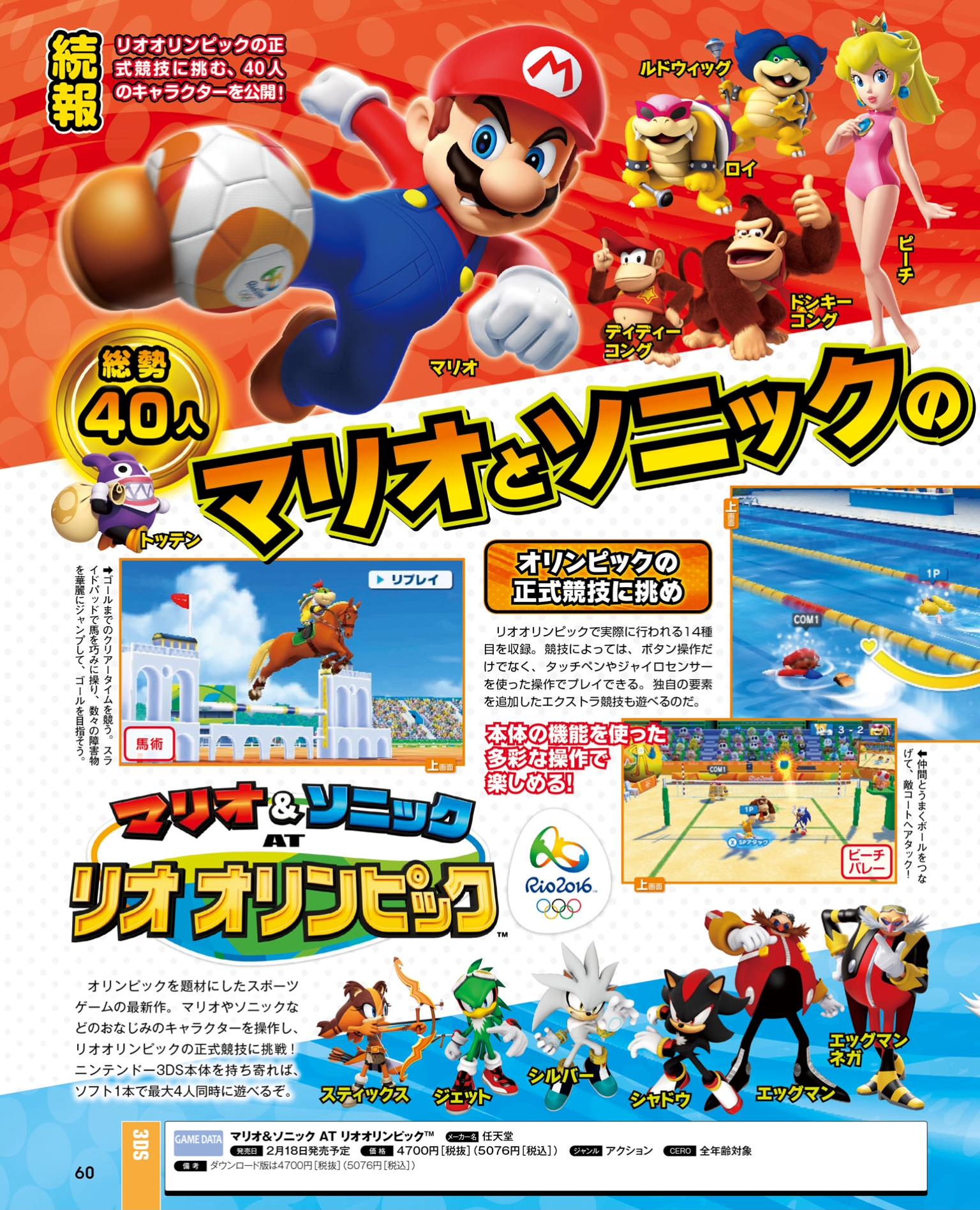 This week’s Famitsu scans are now available. Highlighted games include Hyrule Warriors Legends, Mario & Sonic at the Rio 2016 Olympic Games (3DS), Monster Hunter Stories, Story of Seasons: Good Friends of Three Villages, and Zelda: Twilight Princess HD. Scans of each title can be found in the gallery below.