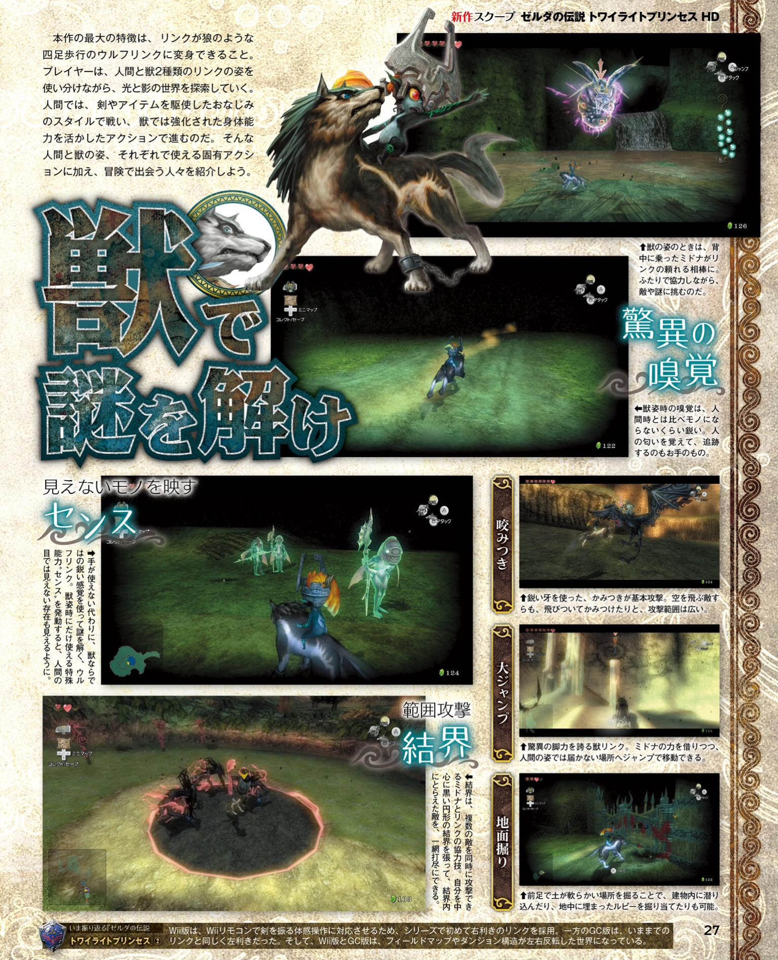 Update: Having gone through the Twilight Princess HD pages, it seems that it doesn’t talk about new features. Instead it re-introduces the whole game – story, Link’s abilities, etc. Famitsu only mentions that everything is redrawn in full HD… so pretty much nothing new. Enjoy the screenshots though!