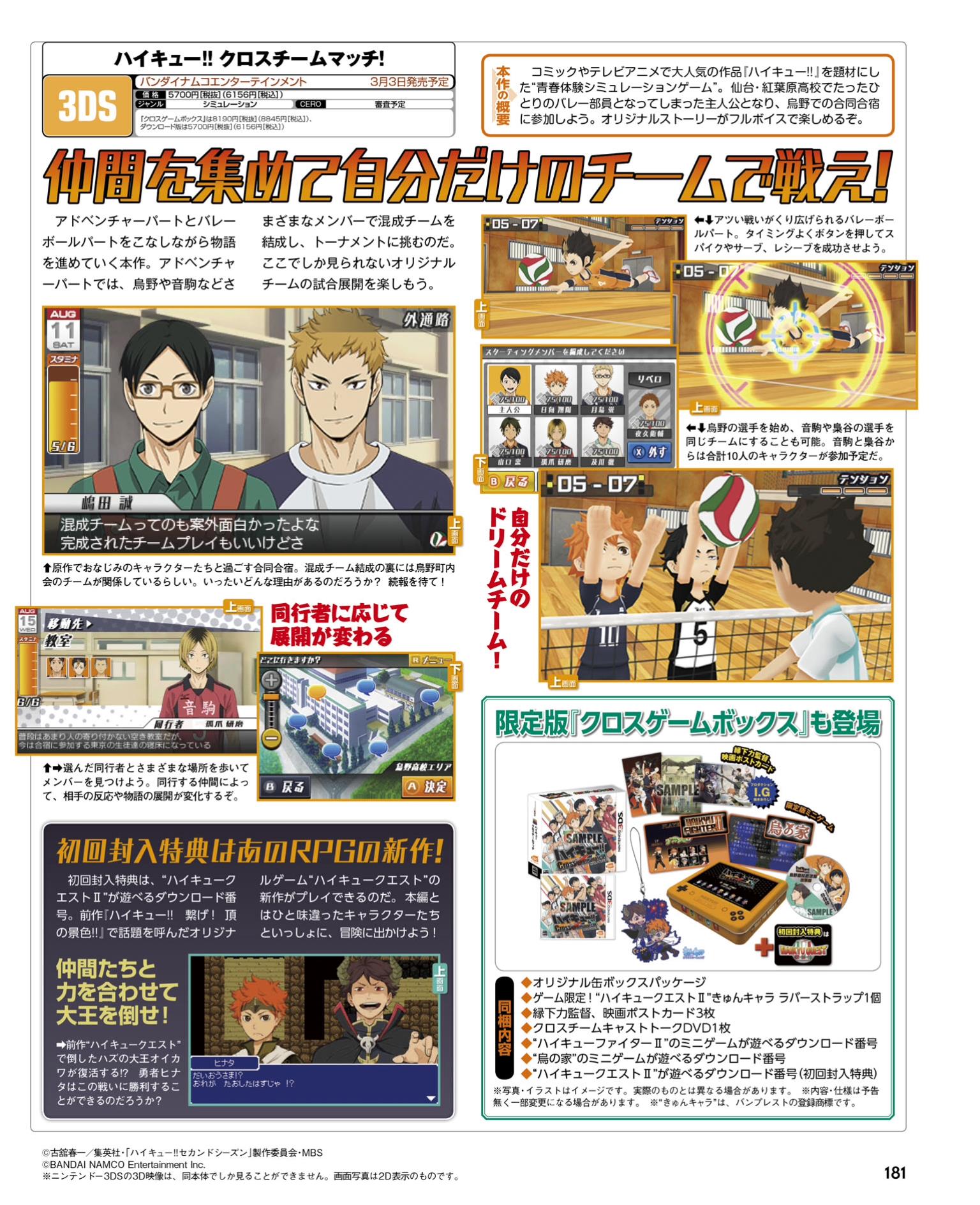 This week’s Famitsu scans are now available. Highlighted games include Dragon Quest Monsters: Joker 3, Haikyuu!!: Cross Team Match, Medabots Girl Mission, and Pompom Purin. Scans of each title can be found in the gallery below.