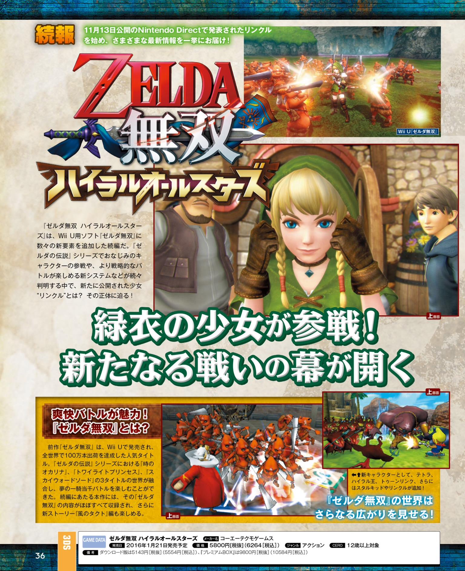 A few days ago, the Japanese Hyrule Warriors Legends Twitter account teased more news for the game. Famitsu has come through with a four-page report on the title.