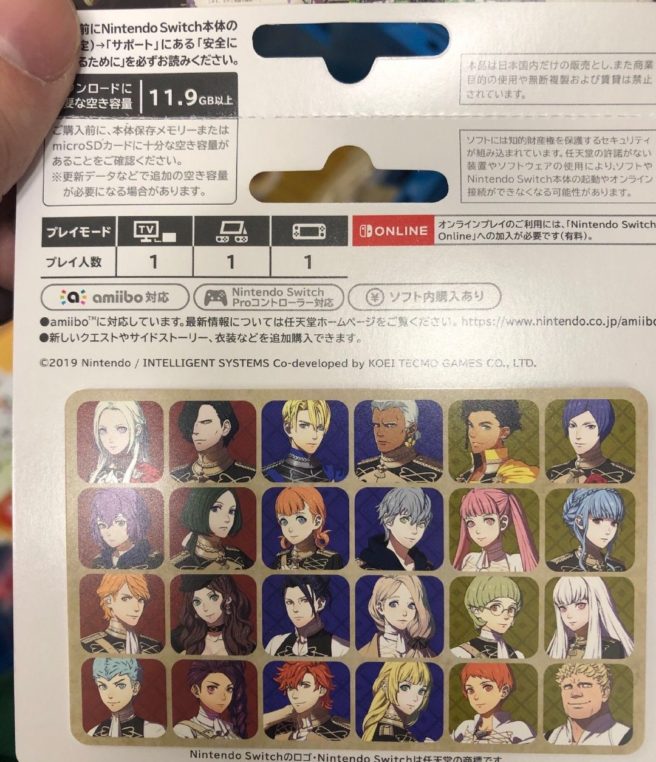 First of all, the download card confirms the game’s file size – it will require 11.9 GB of free space. An active Nintendo Switch Online subscription will also be required for some of the game’s online aspects. We don’t have any concrete details on that, but as far as we know from various previews, the game’s only online aspect is telling you what other players chose to do on a specific day in the in-game calendar. Although no new amiibo have been announced so far, past amiibo can be used in some form in the game. Finally, the download card confirms that downloadable content will be available for the game in the future in the form of new missions, paralogues and outfits.