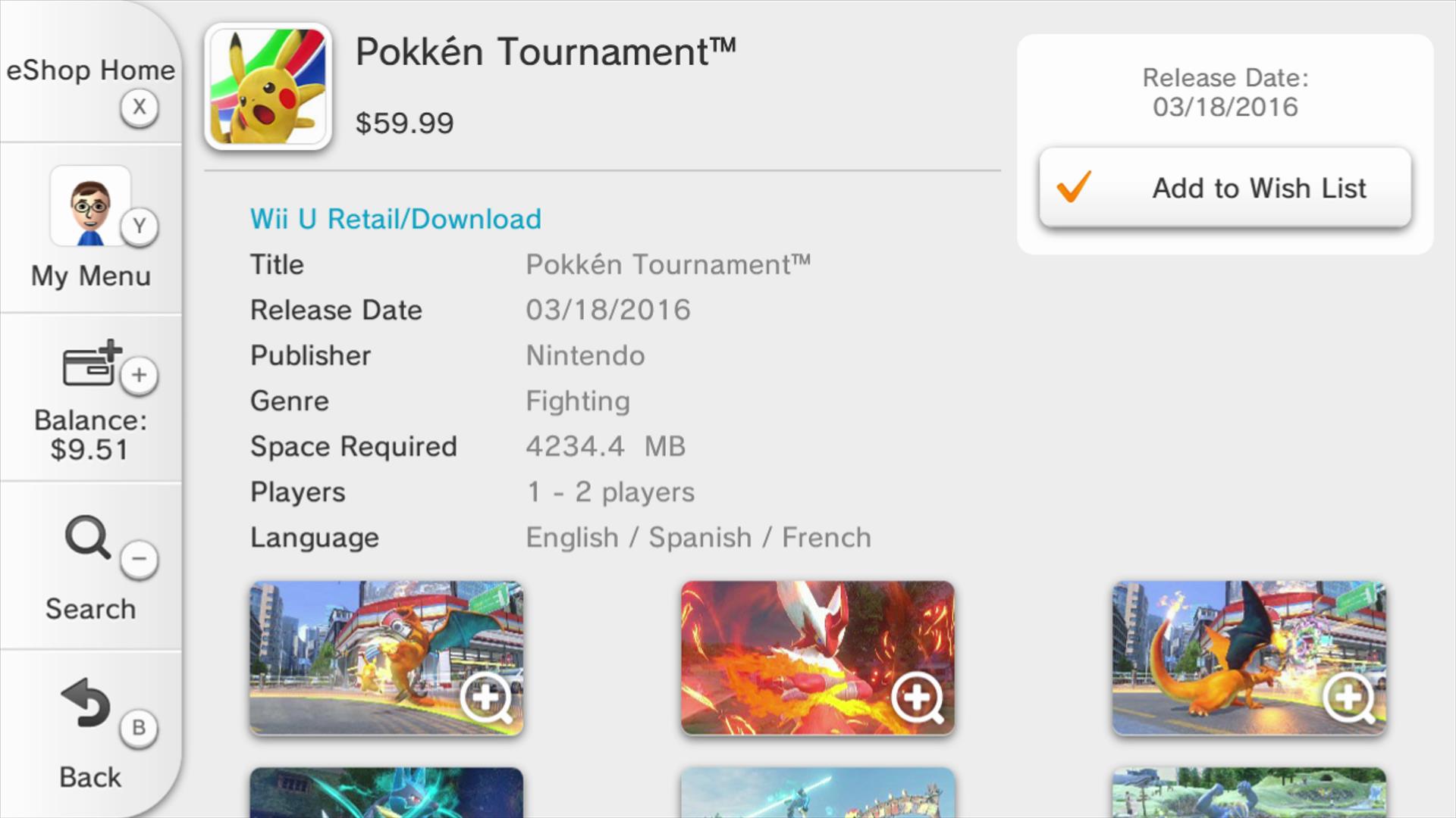 Wii U owners in North America can now view Pokken Tournament’s eShop page. Some interesting details are included in the listing.