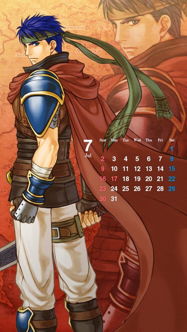 July is right around the corner, which means another set of Fire Emblem Heroes calendar wallpapers. This month, they feature Ike (Radiant Dawn version) and female Corrin, who placed fifth in the Choose Your Legends poll before the game’s release. Next month’s wallpapers will feature Marth and Eirika.