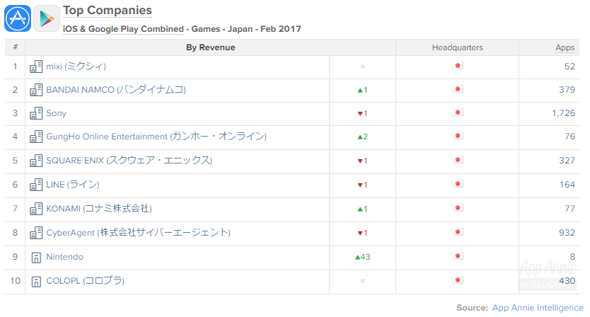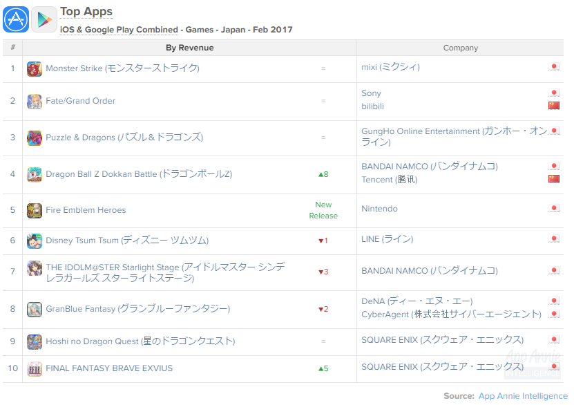 Thanks to Fire Emblem Heroes’ early success, Nintendo was the ninth highest grossing mobile publisher in February.