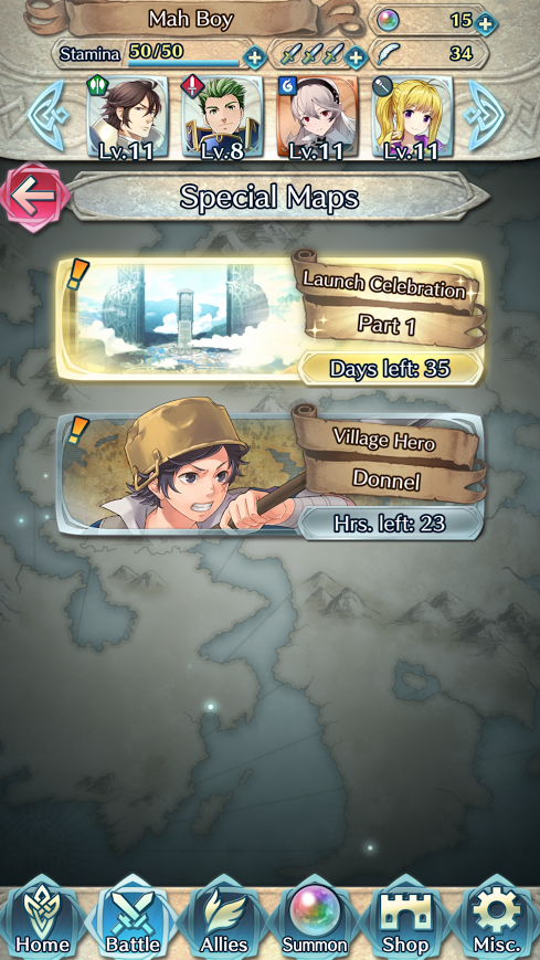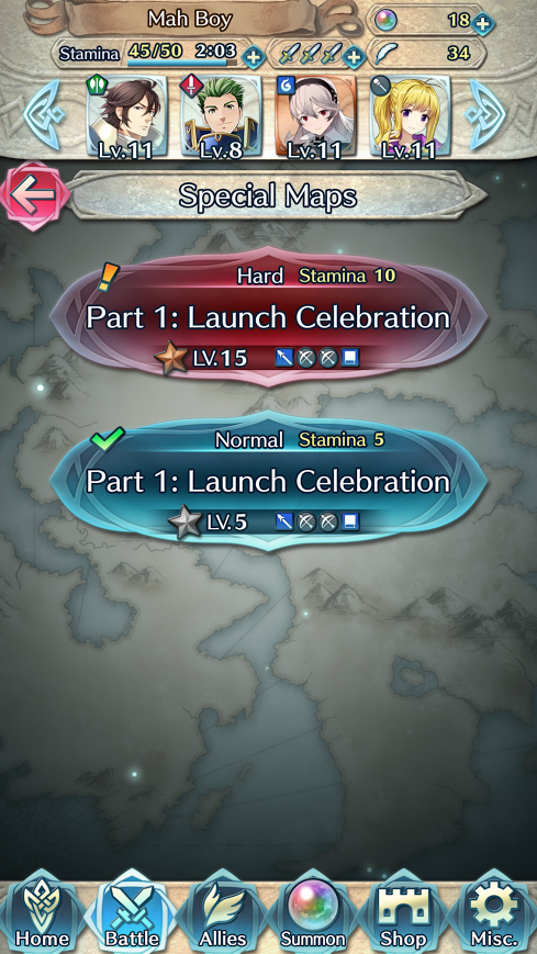 Fire Emblem Heroes is adding in a new wave of “Release Commemoration Present Maps” under the Special Map list. Each map provides three orbs, and since there are two difficulties, there are a total of six orbs to obtain per map. A map will be added each week for five five weeks, meaning there will be a total of 30 orbs up for grabs.