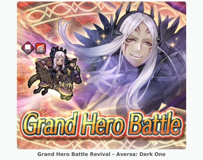 Grand Hero Battle Revival – Aversa: Dark One will be live in Fire Emblem Heroes until May 12.