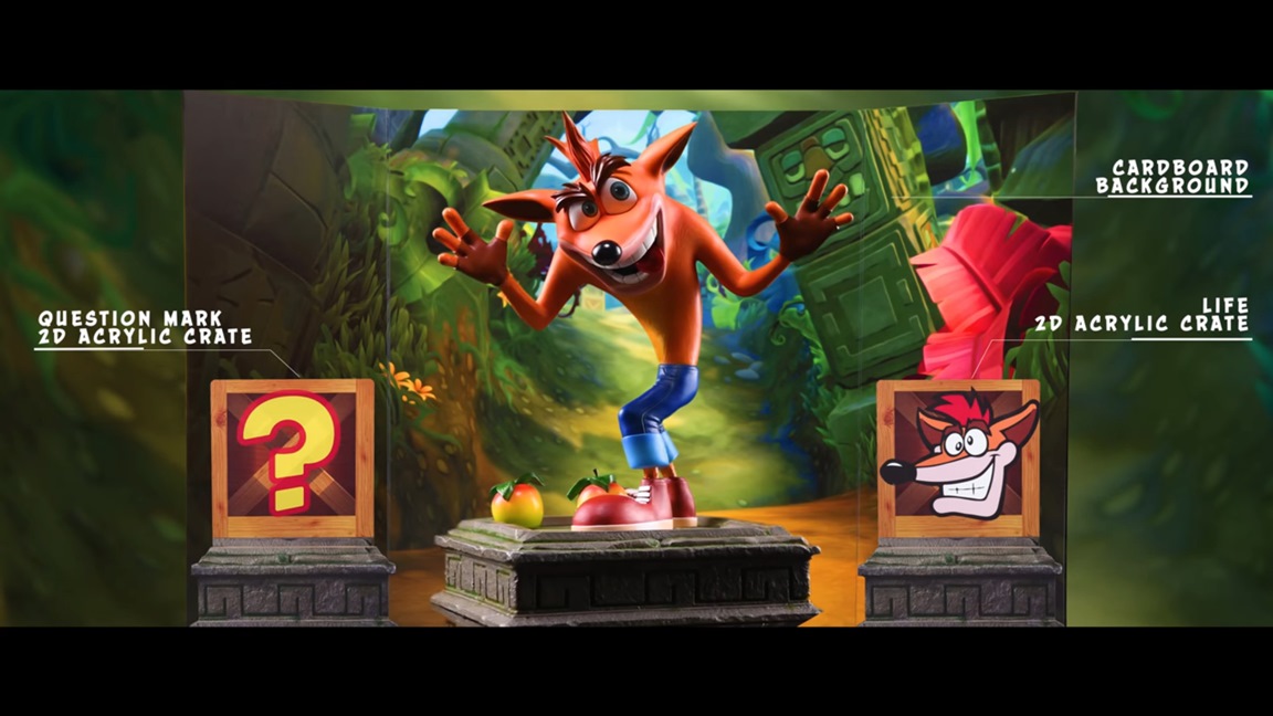 As with past works, First 4 Figures is preparing “Regular” and “Exclusive” editions. The latter version includes a few extras: two Wumpa fruits, a colorful cardboard background, “Question Mark” 2D acrylic crate, and “Life” 2D acrylic crate.