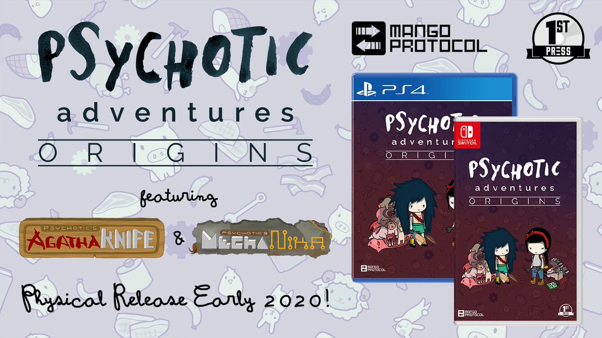 Agatha Knife MechaNika, two titles from Mango Protocol, were previously distributed on Switch as digital downloads. The two will now be bundled together as a physical release known as “Psychotic Adventures Origins”.