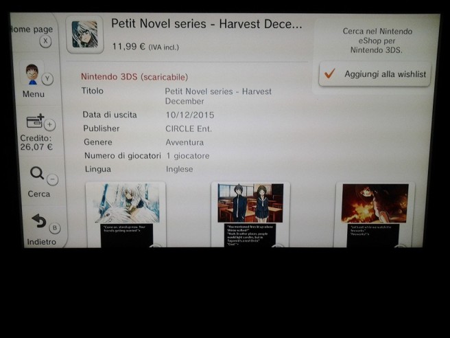 A listing found on the eShop revealed a December 10 release date for Petit Novel series – Harvest December in Europe. As it turns out, this date applies to North America as well.