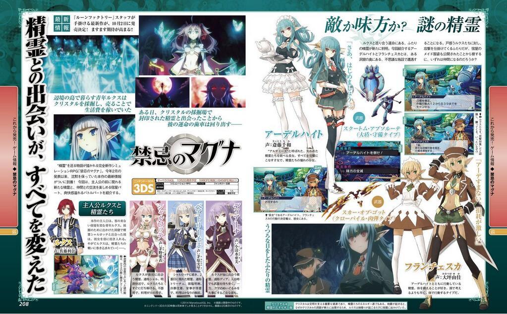 The first details are in from Marvelous AQL’s just-revealed 3DS title, “Forbidden Magna”. You can find a roundup of information included in this week’s Famitsu below.