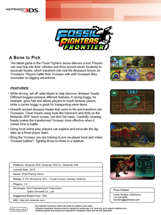 Fossil Fighters: Frontier has been unearthed! Coming to Nintendo #3DS in 2015! Trailer: http://t.co/qCmFwbQqXI pic.twitter.com/Jqqwn1awbd